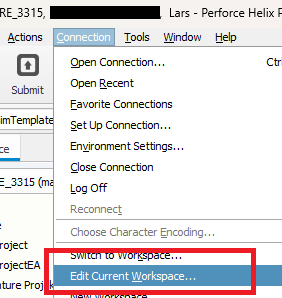 In this case, the files must be manually added to a changelist and submitted. To do this, switch to the workspace view in the Perforce client and search for your newly created project. If it does not show up in the tree structure, you may have to click the refresh button.