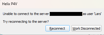 The same data must then be entered as in the “Open Connection” dialog in the Perforce Visual Client: IP address of the server, user name and workspace.