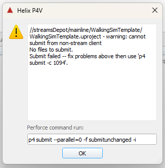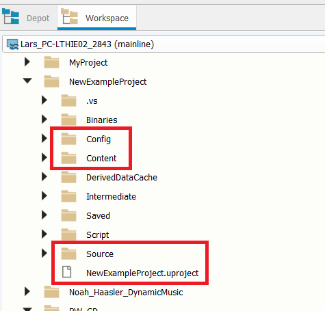 In smaller projects, only one stream will exist, especially if the project is mainly based on blueprints instead of C++ code. Nevertheless, a stream must be selected to enable work within the depot later on.