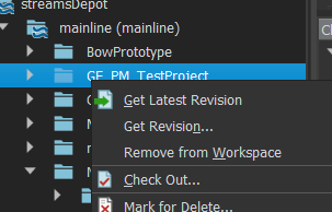 In most cases, we do NOT want to download the entire depot, but a specific project. To do this, the project/folder can be selected in the depot view and “Get Latest Revision” can be selected in the context menu.