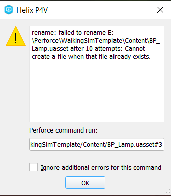 This warning is usually more harmless than it appears – and it will rarely occur in pure blueprint projects. Basically, it simply means that a locally changed file has also been changed on the server and Perforce now wants the conflict to be resolved. See the section “Resolving version conflicts” above.