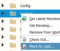 All required files/folders can be selected there and added to a changelist via right-click -> “Mark for Add…” and then submitted. Please note that not all files in the project folder should be submitted. Many folders such as “Saved” , “Intermediate” and “DerivedDataCache” contain temporary files that are needed for the project to function on the local computer, but are generated automatically by each computer when the Editor is started. The only files that actually need to be submitted are those in the “Config”, “Content” and “Source” folders and the *.uproject file itself. If you have installed plugins in the project, they usually use the same file structure within their plugin folders for which the same rules apply. With the exception that, in the case of plugins, you also want to submit the “Binaries” folder if you do not want to compile it yourself.